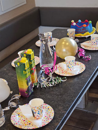 Nicht nur das Backen macht glücklich, sondern alles was dazugehört, alles was so drumherum passiert. Alles, was wir vorbereiten und am Ende schmecken. Und wenn am Ende jeder ein Lächeln im Gesicht hat, dann finden wir das großartig, denn glücklich steht jedem am besten.